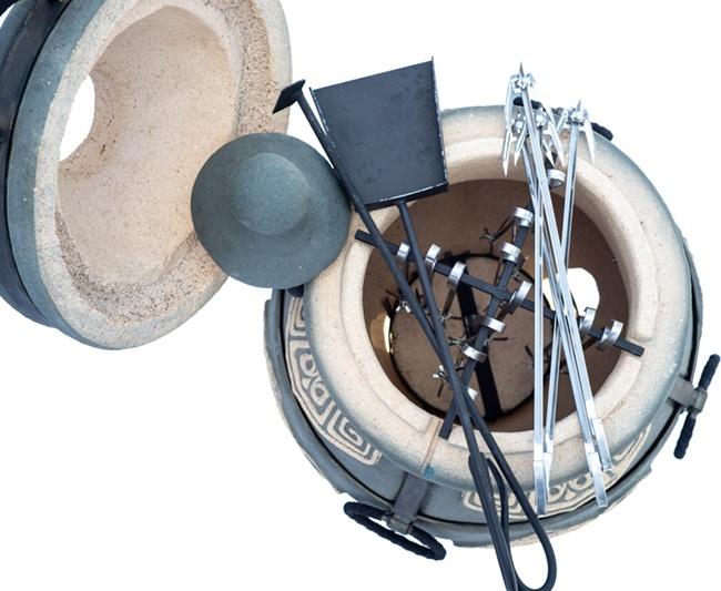 Новый тандыр "Шар", 2 варианта расцветки : черный и графит. Крышка открывается на шарнире. В комплекте шампуры, кочерга, совок, крестовина, зольная решетка, колпачок на крышку, поддувало, термометр, жароотсекатель, ручки обтянуты натуральной кожей. Возможно использование зимой. Дополнительно в продаже есть чехол, набор для лепешек, подвес для рыбы, решетки, крюки, насадки для птицы. Доставка по РБ и РФ.