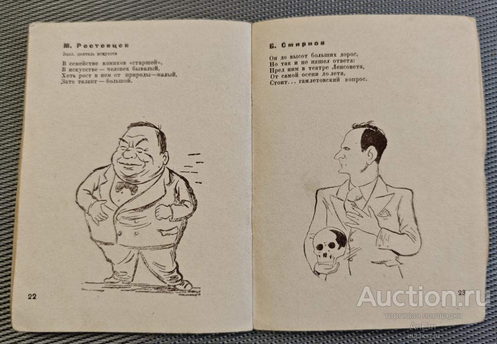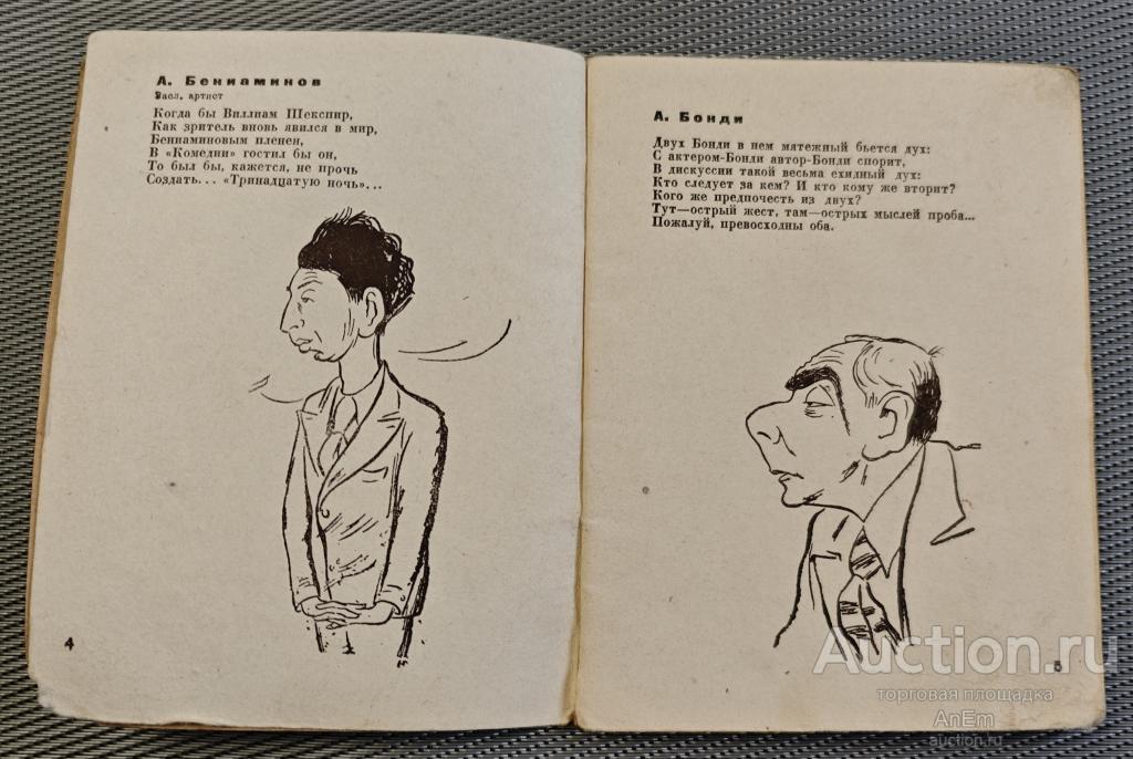 Театральный Ленинград. Дружеские шаржи и эпиграммы. Рисунки И. Гинзбурга. Текст Ал. Флина. Издание Управления по делам Искусств при Ленсовете. Ленинград. 1940 г. Состояние хорошее. Фото.