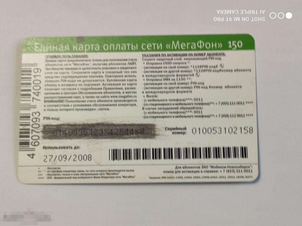 Телефонная карта Купите "Телефонная карта" по цене 200a.