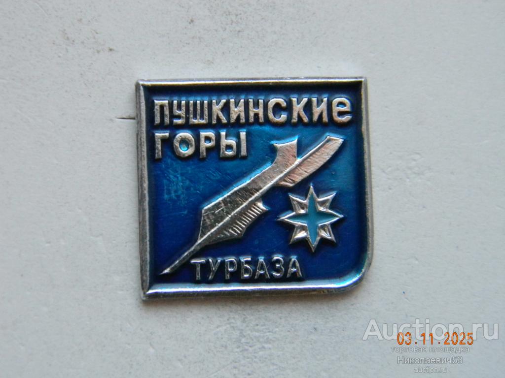 Значок Турбаза "Пушкинские горы", выпуск СССР, легкий металл, заколка, без клейма. Состояние на скане