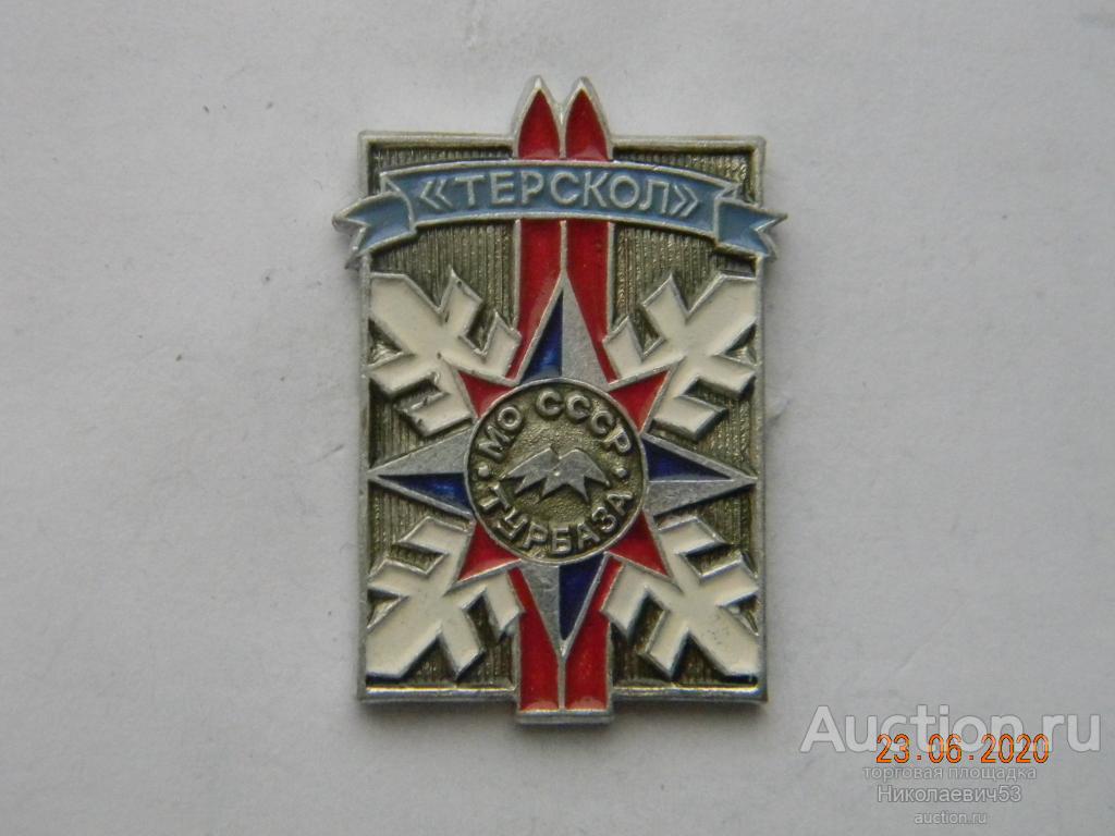 Значок Турбаза "Терскол" Министерство обороны СССР, выпуск СССР, легкий металл, заколка, клеймо ЗСЗ. Состояние на скане