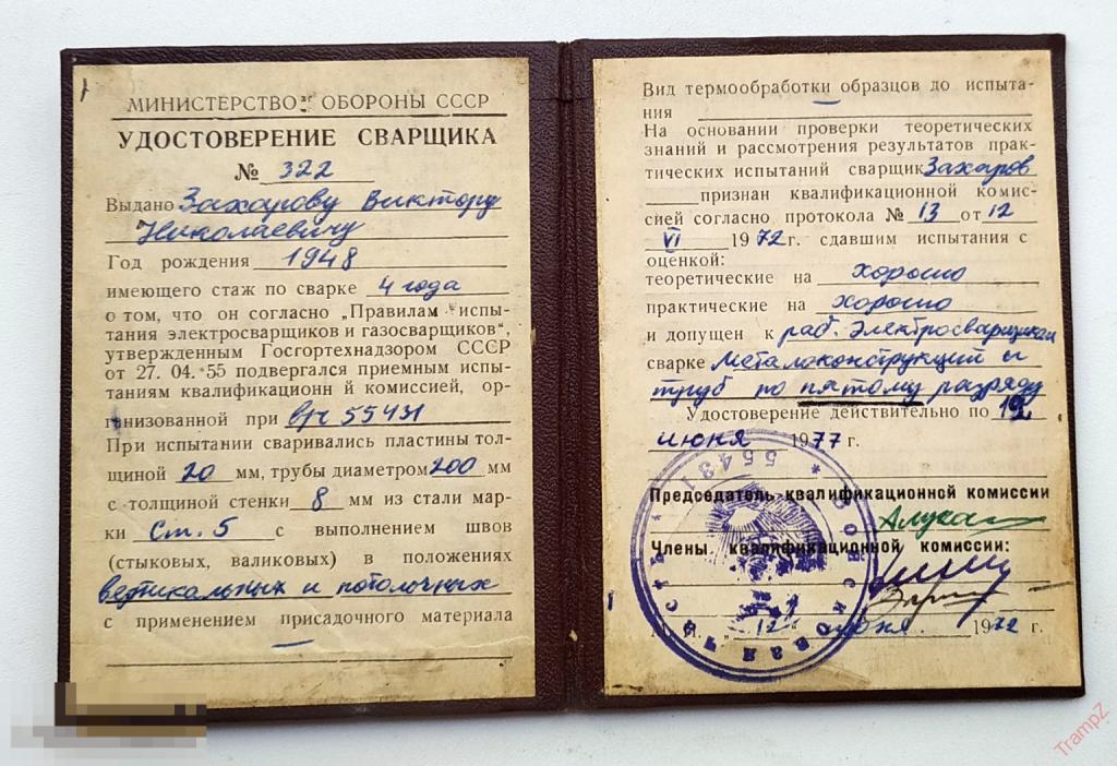 Удостоверение сварщика #Ф3 Купите "Удостоверение сварщика #Ф3" по цене 100a.