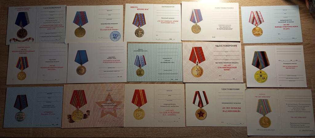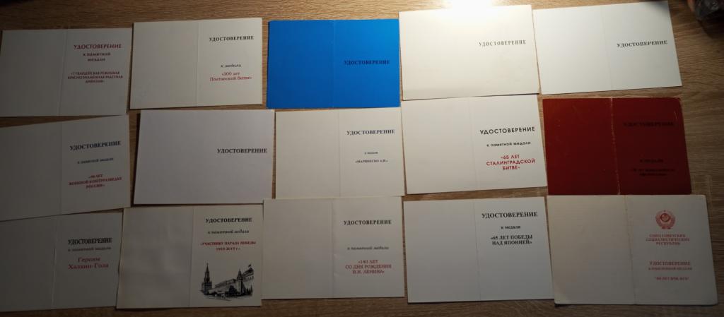 Бланки незаполненных удостоверений на различные медали
