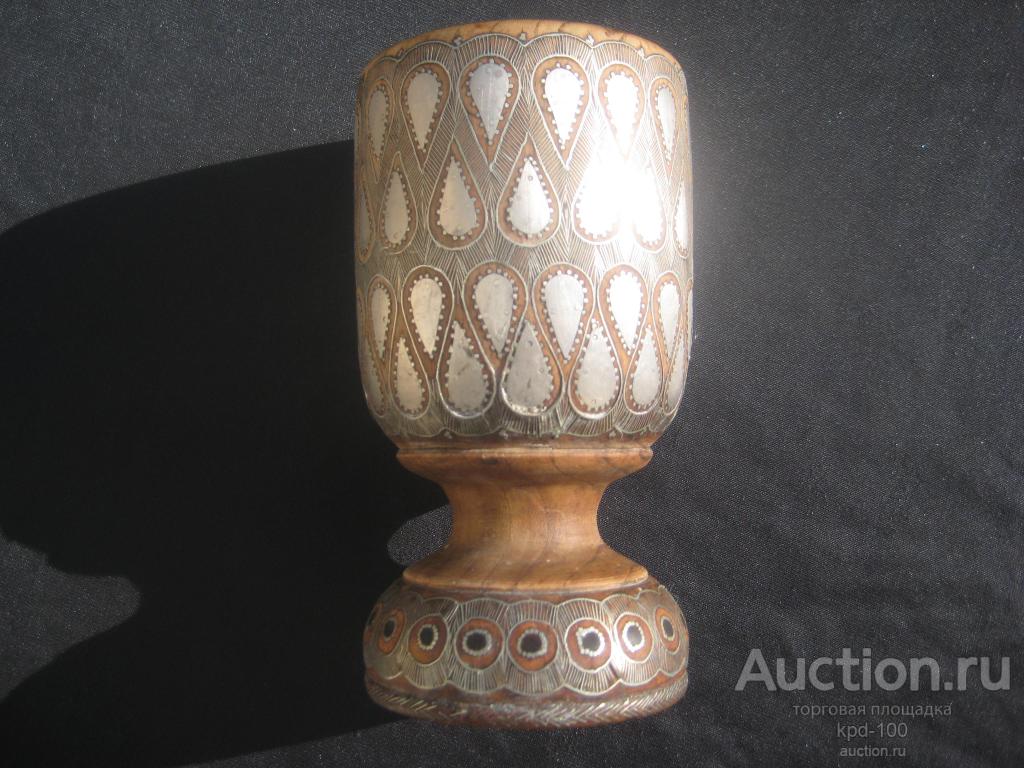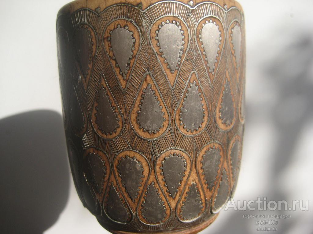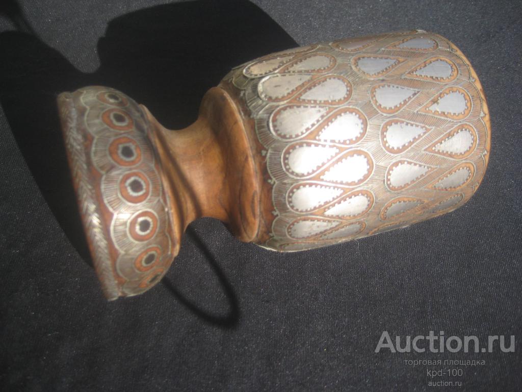 Изумительная инкрустация насечкой металла аварских мастеров Дагестана.. Высота 14 см. Вишневое дерево.