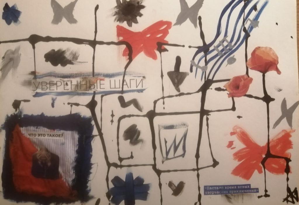 Работа выполнена на эмоциях о человеке. В картине показаны чувства об этом человеке. Добавлены некоторые дополнения как ткань и вырезки из журналов. Работа в рамке со стеклом