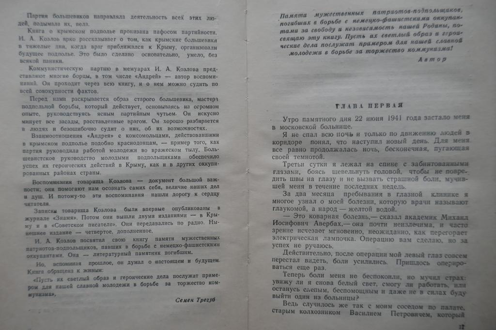 В Крымском подполье Козлов И.А. Воспоминания.Молодая Гвардия.Москва.1948г.352с.,редкое издание.