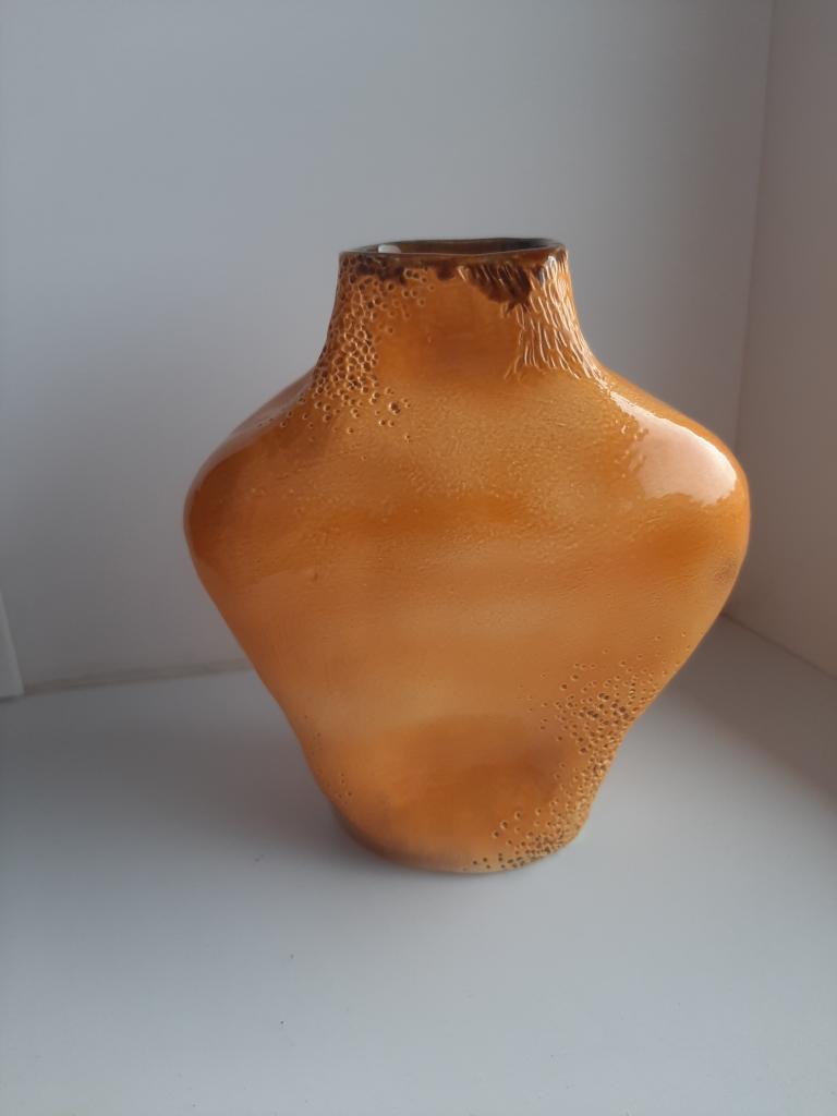 Данная работа является авторской, и единственной в своём роде. Работа выполнена с элементами вмятышей в сочетании с точками, напоминающие песок, и прорезями, напоминающие песчаные волны. Данный узор и цвет используется только в этом изделии, она является уникальной и неповторимой.