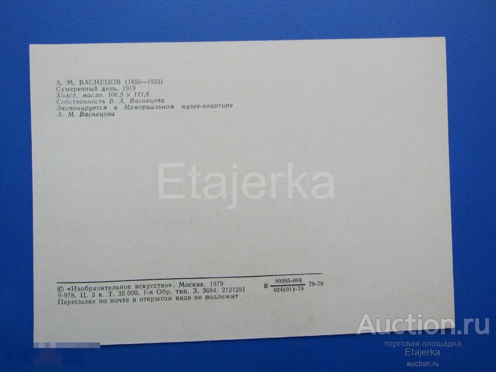 Купите "Васнецов. 1979. Сумеречный день. " по цене 30a.Покупайте сейчас, чтобы не упустить эту отличную цену на “Auction.ru” или сделайте свое предложение продавцу.
