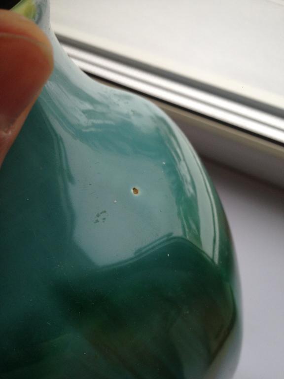 На вазе есть маленькая щербинка или дырочка на 1-2 фото видно. Больше дефектов не нашел.