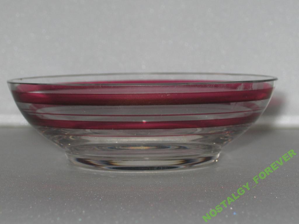 НИЗКАЯ ВАЗОЧКА ИЗ СТЕКЛА.ВЕРХНИЙ ДИАМЕТР 9.5СМ,ВЫСОТА 3СМ.СОСТОЯНИЕ БЕЗ ТРЕЩИН,ЕСТЬ МИКРОСКОЛИК ПО КРАЮ.НЕЗАМЕТНО.