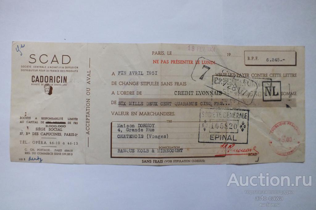 ВЕКСЕЛЬ. ФРАНЦИЯ 1951 год