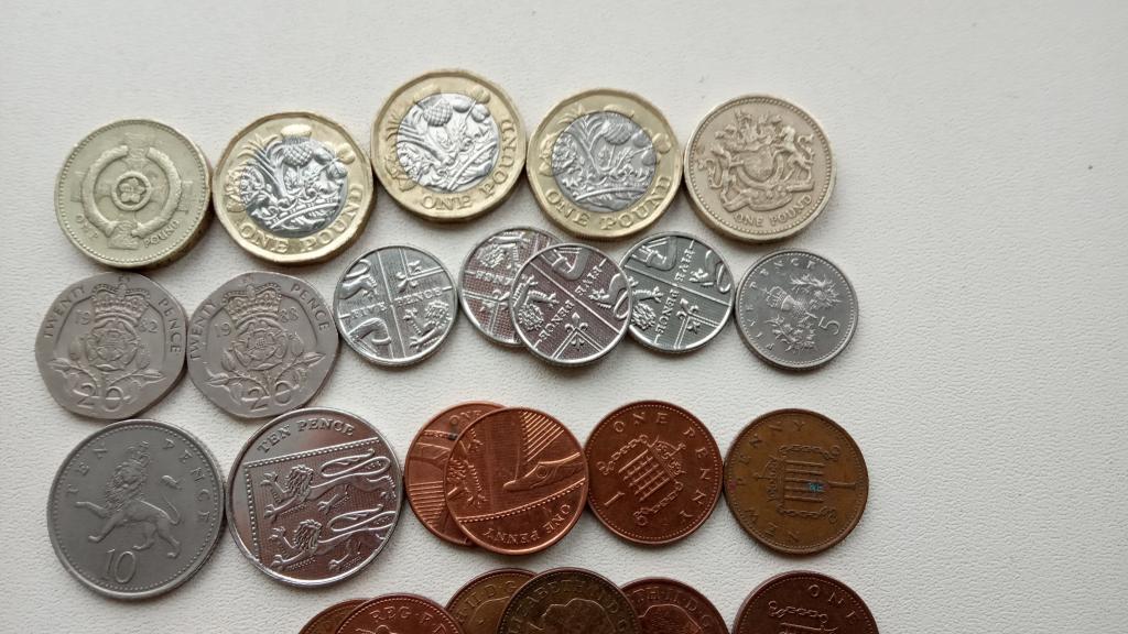 1 фунт 1983,1996,2016,17,19 20пенс 1982,88 10 пенс 1996, 2013 5 пенс 2005, 3 шт 2013, 16 1 пенс 12 шт. разные