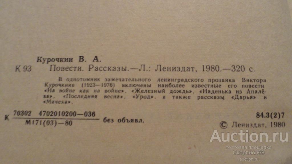 В однотомник замечательного Советского прозаика Виктора Курочкина (1923-1976) включены наиболее известные его повести "На войне как на войне", "Железный дождь", "Наденька из Апалёва","Последняя весна"."Урод". а также рассказы "Дарья" и "Мачеха". Обложка твердая .Качество на фото.