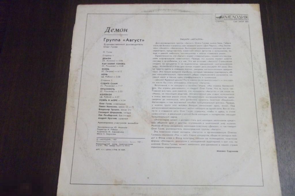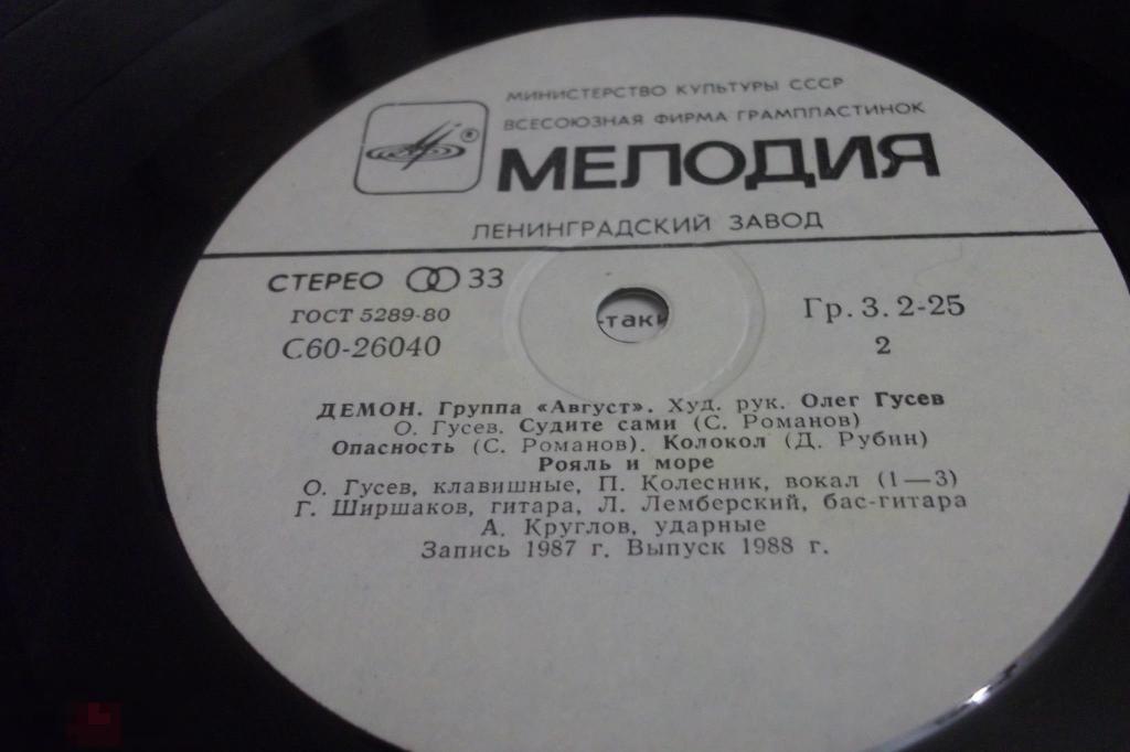 Виниловая пластинка группа Август