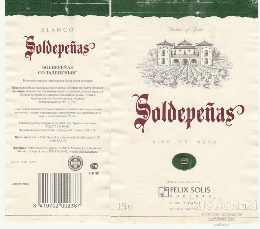 Вино Испания Сольдепеньянс