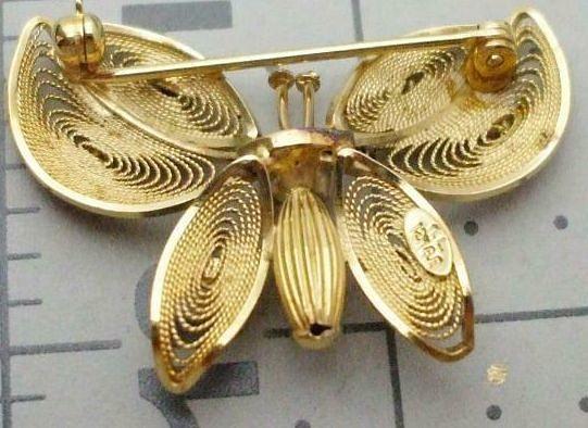 Винтажная брошь. Бабочка 4,0 см.. Маркирована K.L. 12K GOLD. Позолота 12к, жемчужина.