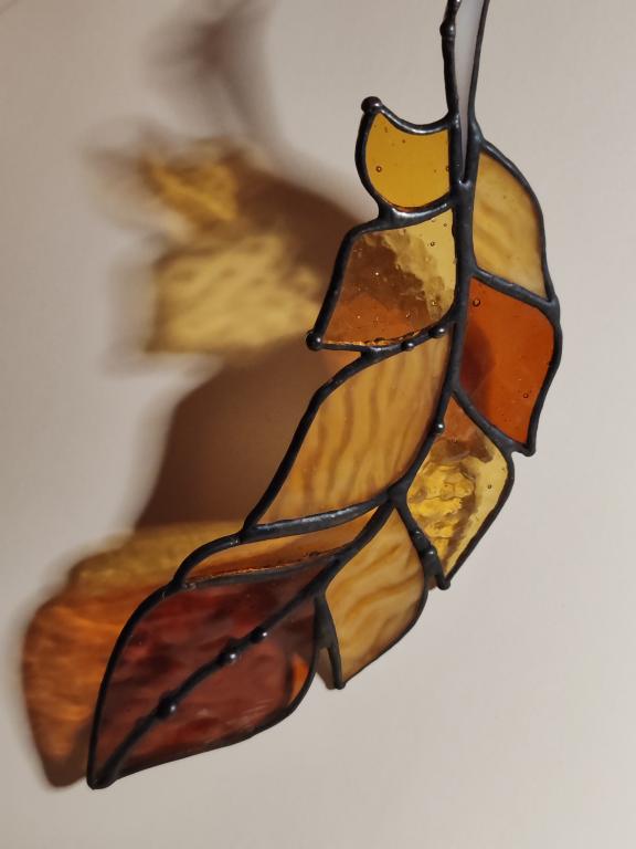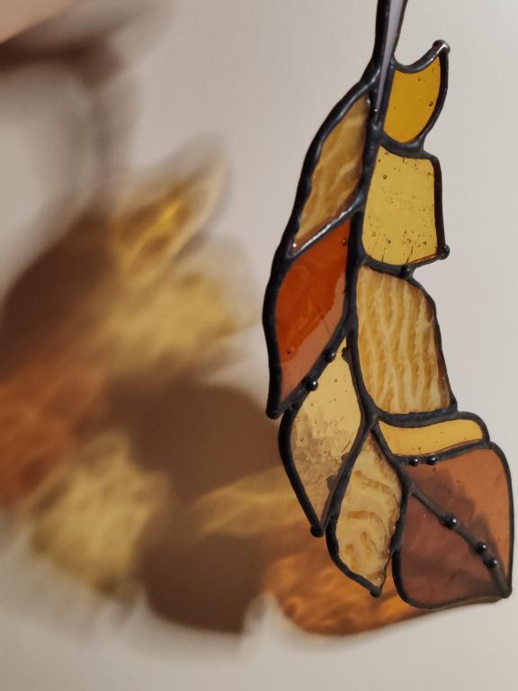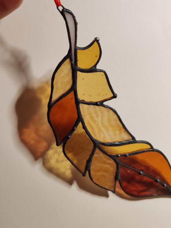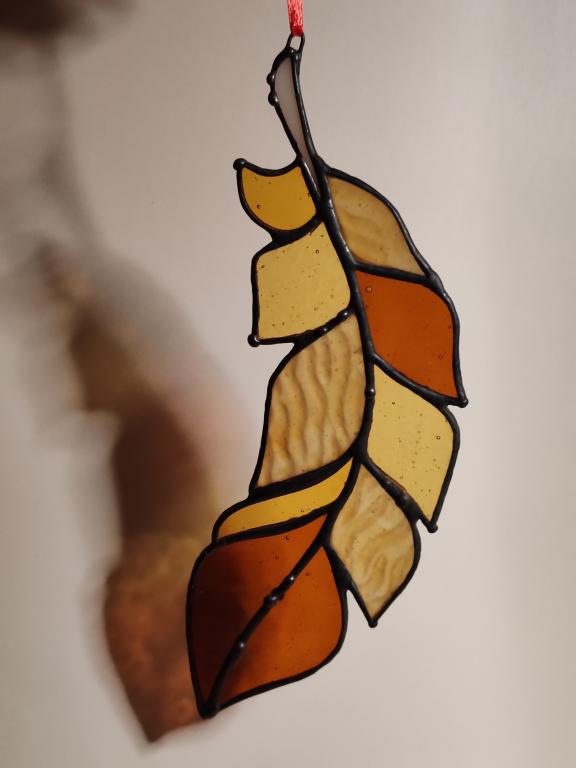 Перо сказочной жар птицы, выполненное в технике Тиффани из художественного витражного стекла