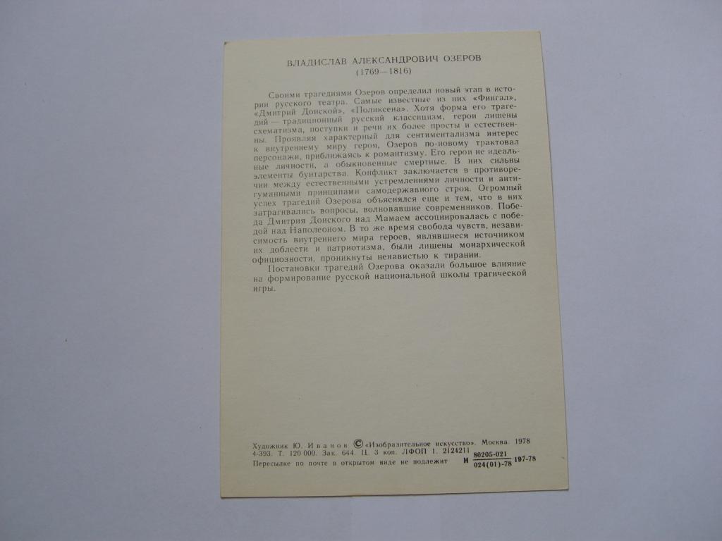 Купите "Владислав Александрович Озеров. 1978" по цене 20a.Покупайте сейчас, чтобы не упустить эту отличную цену на “Auction.ru” или сделайте свое предложение продавцу.