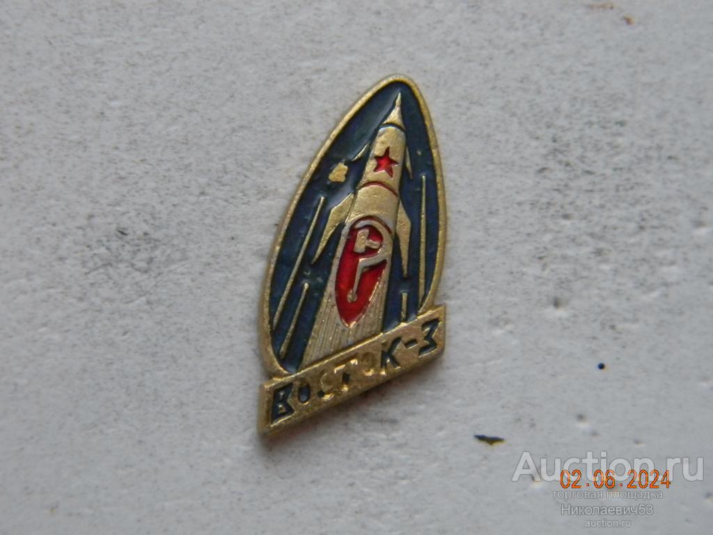 Значок Восток-3, выпуск СССР, легкий металл, заколка, клеймо П. Состояние на скане.
