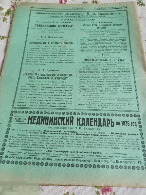 Врачебная газета. 28 февраля 1926г. Номер 4. Типография Торговой