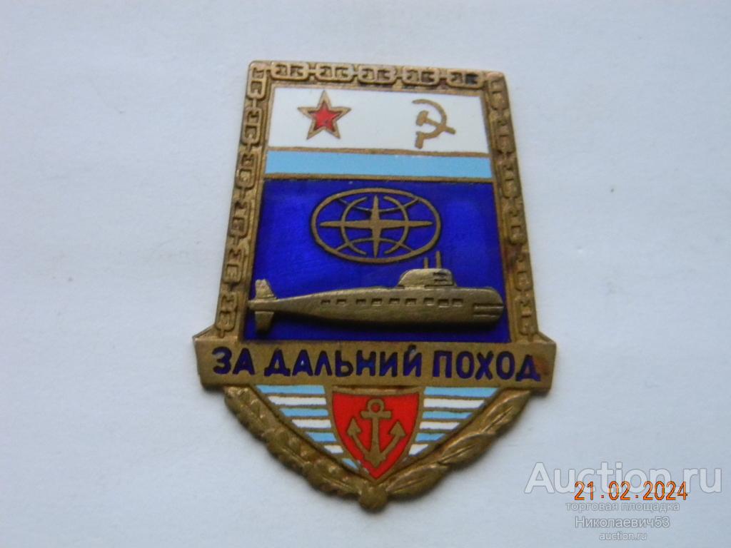 Знак За дальний поход. Подлодка.тяжелый металл, эмаль, заколка, без клейма. Состояние на скане. Изготовлен в Таллине, Эстонская ССР.