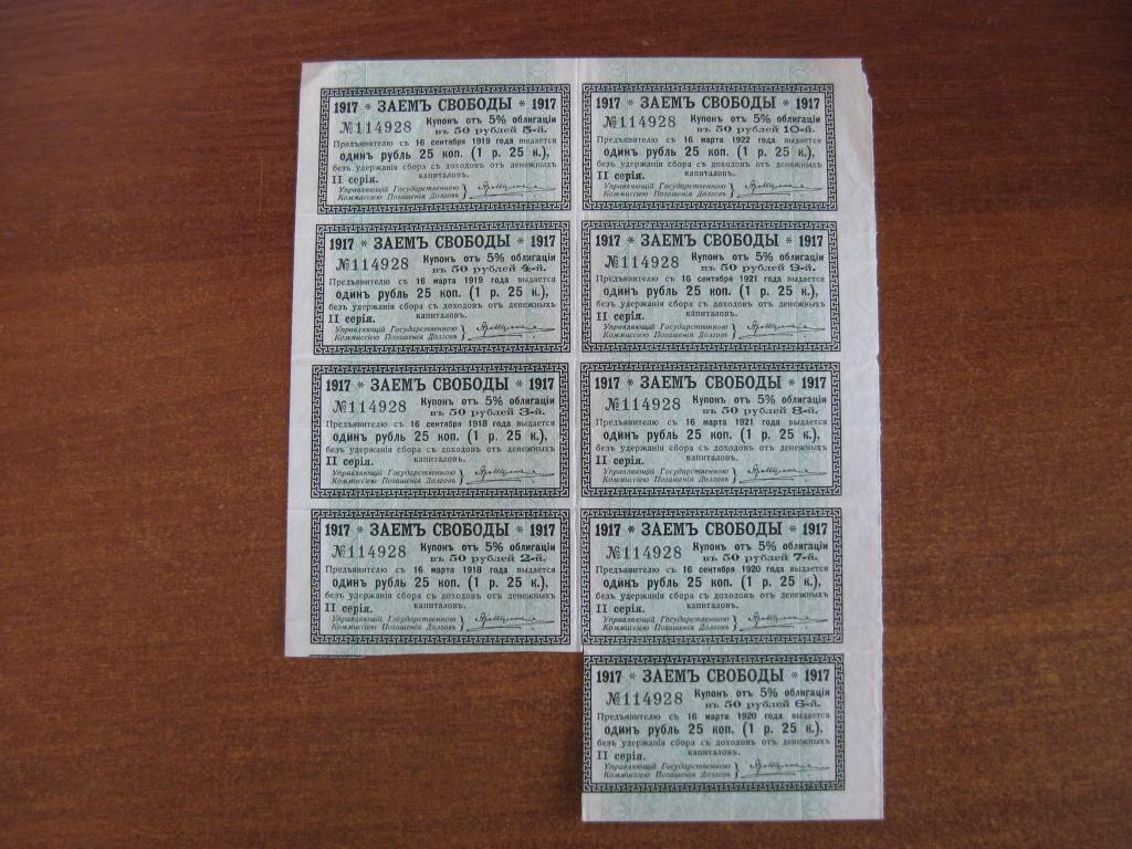 Купите "Заем Свободы Купоны" по цене 1 100a.Покупайте сейчас, чтобы не упустить эту отличную цену на “Auction.ru” или сделайте свое предложение продавцу.