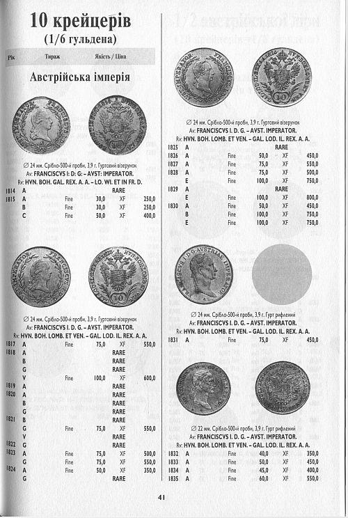 Каталог-ценник монет Австрийской империи 1811-1917 годов. Цены