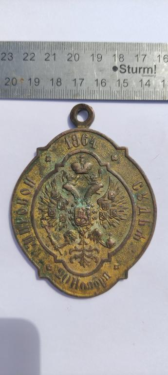 Жетон мирового судьи 1864 года. Клеймо братьев "БУХЪ". Бронза в позолоте.