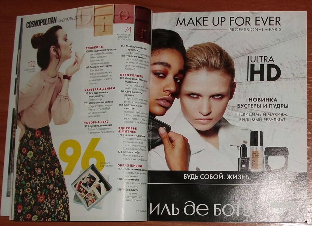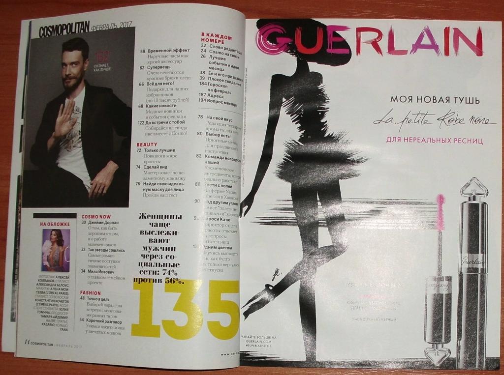 Журнал Cosmopolitan февраль 2017 на русском языке. Состояние отличное. Формат 17х22 см.