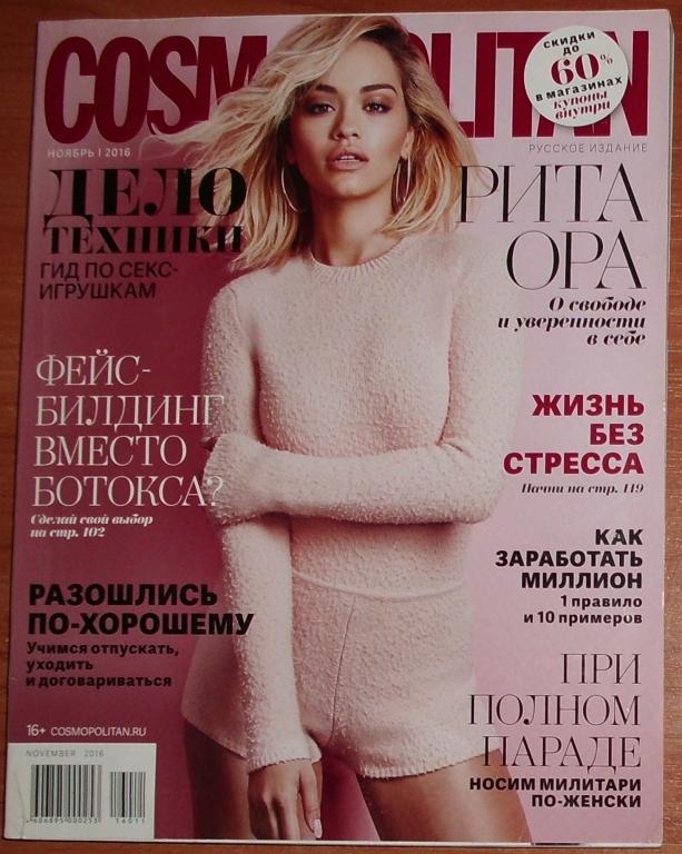 Журнал Cosmopolitan ноябрь 2016 на русском языке. Состояние отличное. Формат 17х22 см.
