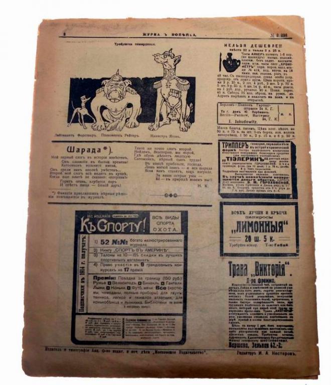 История из первоисточника! Старинное издание первого года войны - Журнал Копейки, 1914 год. На обложке Швейцарские Альпы. Множество интересной рекламы того времени. Хотя где-то началась мировая война, рекламный блок в конце журнала пестрит предложением всяческих услуг и товаров, предлагаемых читателю в те стародавние времена. Очень познавательное объявления, многие из которых по своему уже юмористическому содержанию вызывают улыбку...Размер 30 х 21.8 стр.Из истории издания:Первый номер газеты, увидевший свет 5 августа (23 июля) 1909 года, обозначил главные цели нового издания следующим образом:«Приступая к созданию новой, независимой и доступной газеты в это сложное переходное время, мы осознаём всю сложность задачи. „Муть“, поднятая со дна народной жизни войной и революцией, ещё не осела… Мы верим, что только совместным, мирным трудом и борьбой с несправедливостью и невежеством можно объединить все силы страны, залечить раны прошлого и создать новую, справедливую жизнь, о которой мечтал Чехов».«Газета-копейка» публиковала городские новости, фельетоны, зарубежные сообщения, заметки о политике. Доступная цена делала её популярной, особенно среди рабочих и мещан. Подчёркивалось, что газета отличается от других понятным языком изложения. Мать Михаила Зощенко, Елена Сурина, публиковала в газете рассказы о жизни бедняков.К газете прилагались различные издания, такие как «Журнал-копейка», «Всемирная панорама», «Листок-копейка», «Искорки», «Здоровая жизнь», «Дом и хозяйство», «Библиотека сенсационных романов», «Волны», «Веселый балагур», «Зеркало жизни», календари и словари. Газета выходила в нескольких изданиях, отличавшихся количеством приложений. После революции газету подвергли цензуре, и выпуск прекратился с ноября 1917 по март 1918. Вместо неё выходили другие газеты. В августе 1918 года «Газета-копейка» была закрыта.В 1909 году в Москве начали издавать «Газету-копейку», позднее переименованную. Издание было популярным, тираж достигал 60 000 экземпляров. В Ростове и Харькове также выходили «Газеты-копейки», но они не были связаны с московским изданием.Здравствуйте, спасибо за внимание к моему лоту.🙂 Все вопросы по доставке, оплате задавайте мне до покупки. Я выставляю здесь лоты по фиксированной цене. Небольшой торг возможен на ряд позиций — предлагайте свои варианты в разумных рамках. Дополнительные фото выставленных вещей я с радостью предоставлю по Вашему запросы, но на все всегда требуется время (и память). Оплата многих лотов возможна в Москве наличными, но часть продаю только по оплате на карту Сбербанка. И оплату надо произвести до 2 дней после ставки. Лоты отправлю в любой город страны через почту России или СДЕК. ( Но Сдек не все вещи принимает к отправке) Стоимость почтовых расходов по тарифам почты России оплачивает покупатель. Высылаю в течении 2-3 рабочих дней после получения 100% оплаты лота и почтовых расходов (бывает и раньше, но это от наличии времени и других заказов). Если вы с Москвы, то может быть выйдет передать предмет сразу в этот же день. ВСЕ УТОЧНЯЙТЕ В ЛИЧКЕ! После отправления предоставляю скан почтового чека с номером посылки, для дальнейшего отслеживания ее. 🙂 Гарантирую надежную упаковку. Самовывоз из юго-западного района Москвы по договоренности. И еще, наличие понравившейся вещи, лучше всегда уточнять перед ст