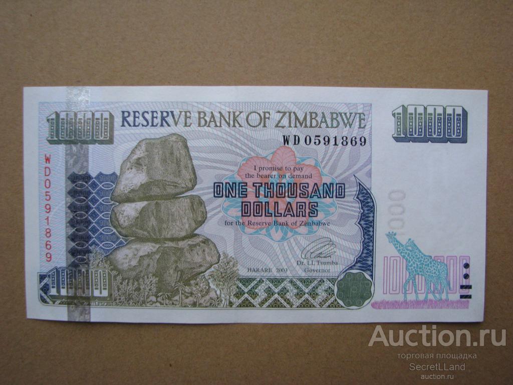 Зимбабве 1000 долларов 2003 год. Состояние на фото.