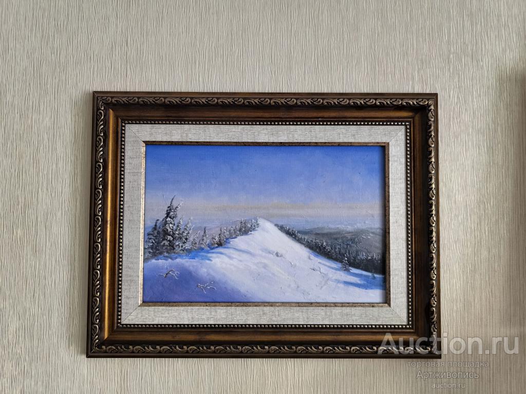 Выполнена холст на картоне 20*30, масло. Первая зимняя картина в