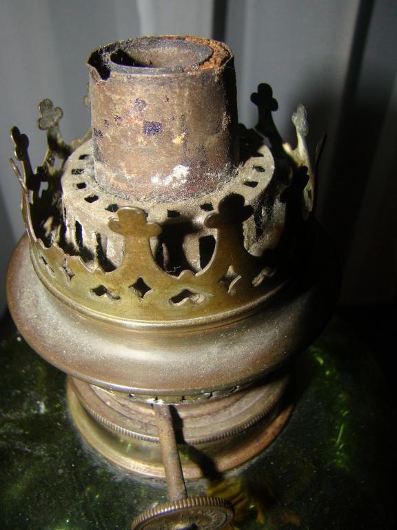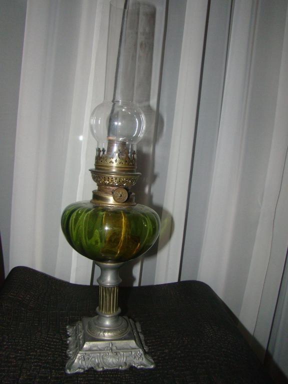 Очень красивая редкая керосиновая лампа со стеклянной колбой.