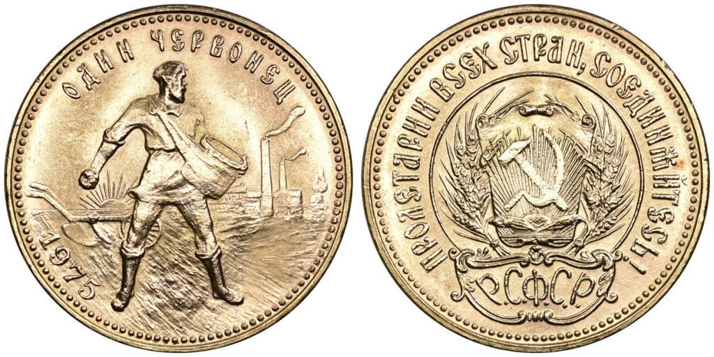 ЧЕРВОНЕЦ 1975 года. СССР. Au 0.900, 8.60 г., 0.2489 oz. Тираж 250000 шт.
