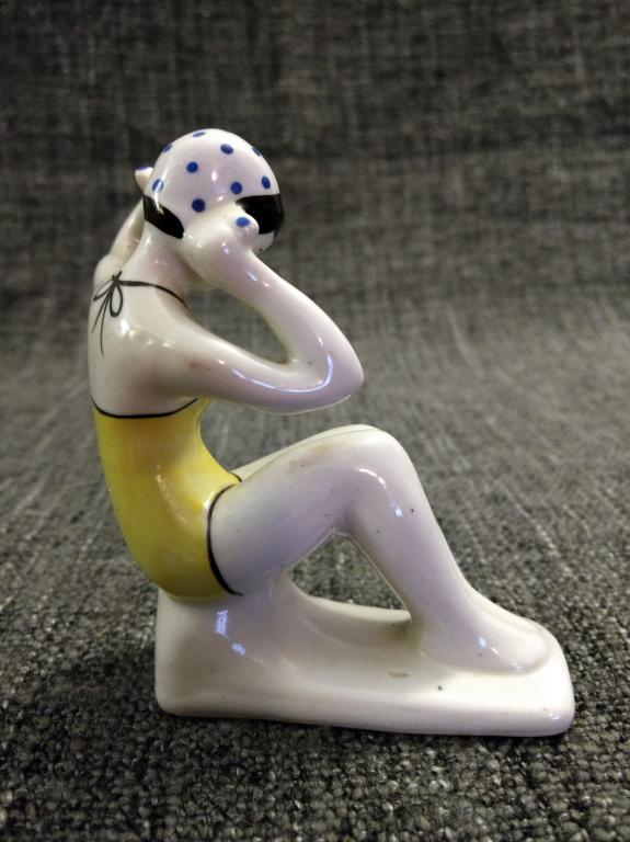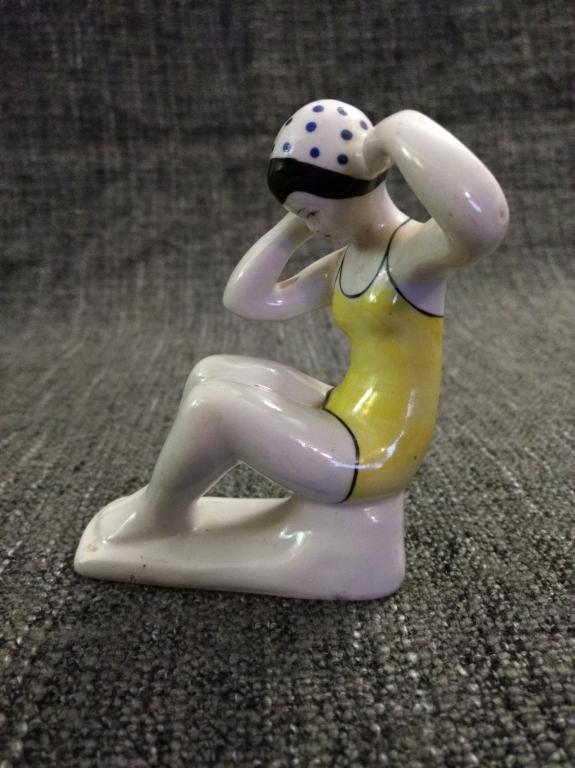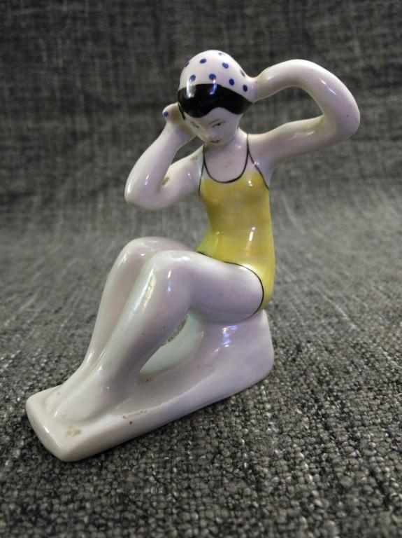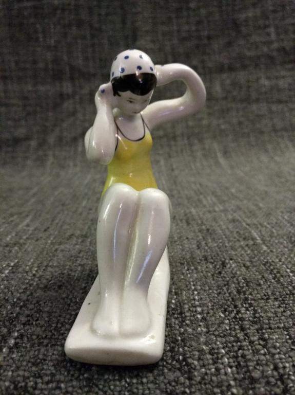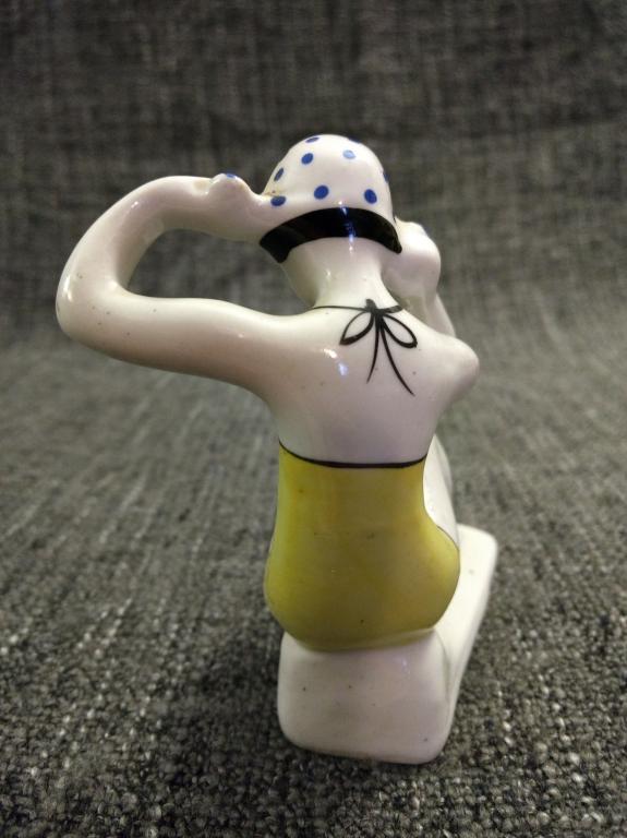 Купальщица, Гжель, 50-е гг., оригинал, отличное состояние, редкий окрас шапочки (синий)!